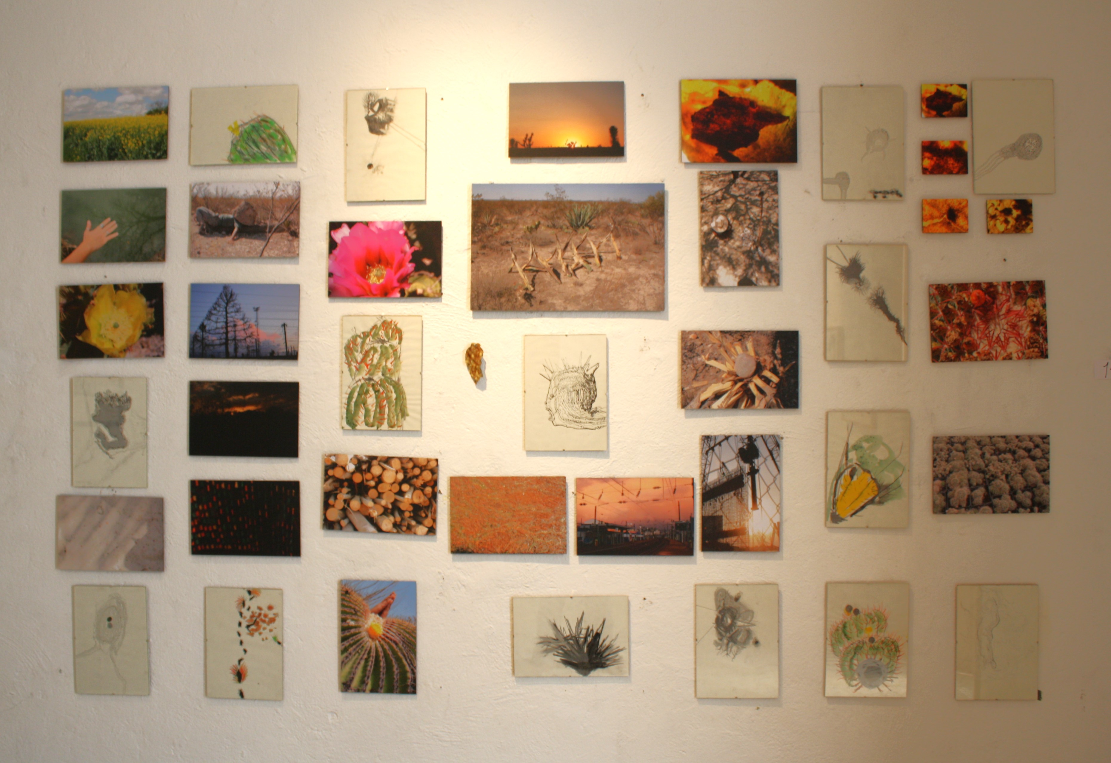 The exhibition is primarily graphic, but also includes painting, photography, and installation, traversing connotations between elements such as fire, air, earth, and water, connected to origin and primordial chaos.